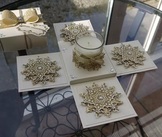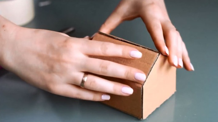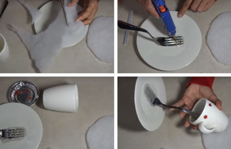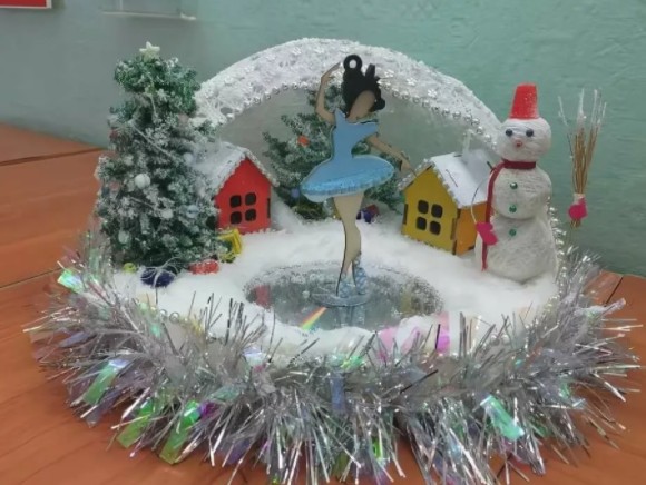 К крышке прикрепить кусок пенопласта, он будет имитировать сугроб. К нему — ветку ели и любую фигурку.