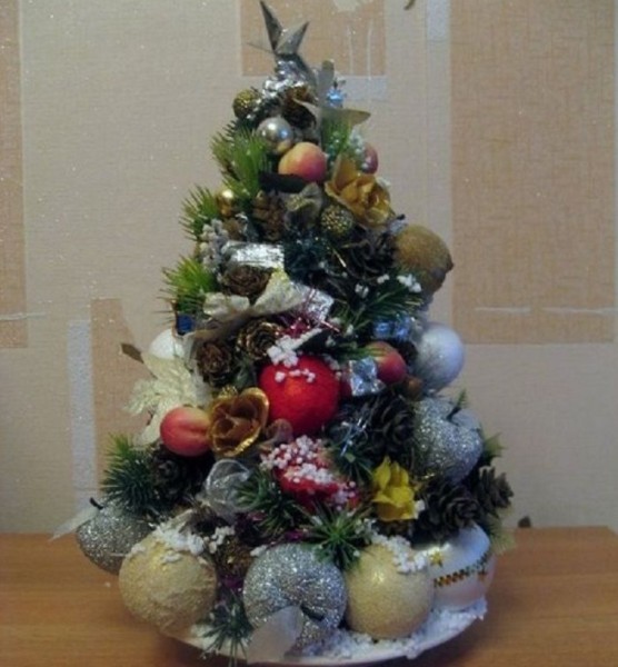 Не беда, если у вас нет новогодней елки, ее можно сделать из елочных шариков, которые есть в каждом доме.