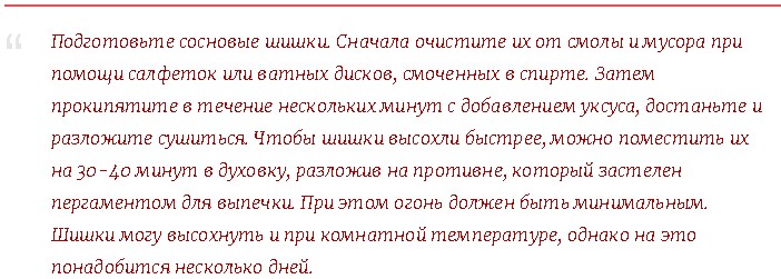 Шишки следует подготовить тем же способом, что описано в первом варианте.