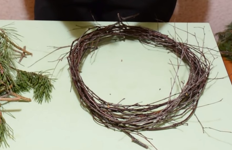 Основу любого венка составляет каркас, это могут быть любые гибкие материалы, например, длинные ветки березы или девичьего винограда.