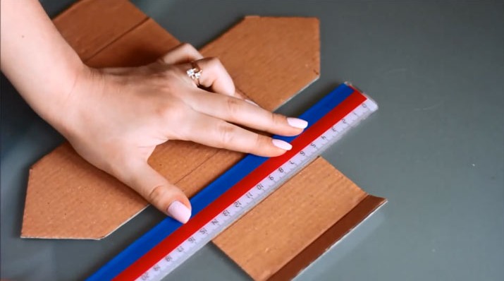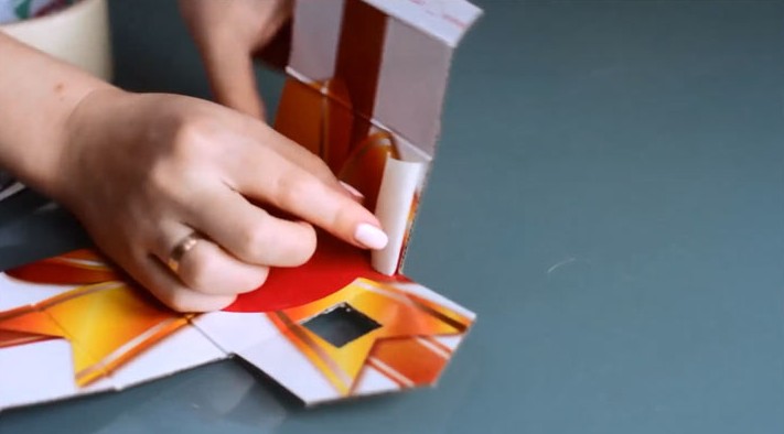 - Из картона вырезать ленту и приклеить ее на боковую часть бобины.