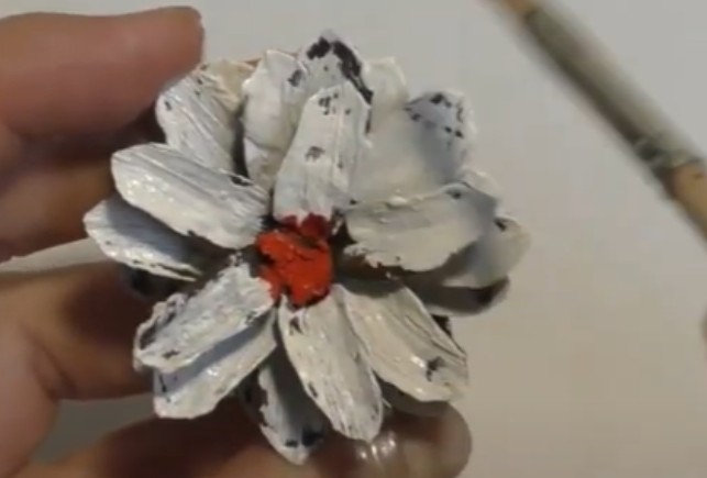 Подкрасьте шишки краской белого или серебристого цвета, имитируя снег. Для придания заснеженного вида внутрь чешуек нанесите клей и насыпьте мелкой соли