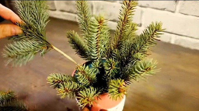 Если остались пустоты, дополняем их оставшимися веточками, композиция должна получиться ровной и пушистой.