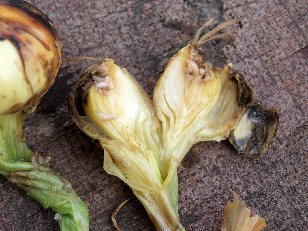 И самыми неприятными гостями для лука являются его вредители. От них он не только может пожелтеть, но и вовсе покрыться ржавчиной или засохнуть и погибнуть. К таким вредителям чаще всего относится луковый трипс, долгоносик, луковая муха, моль, стеблевая нематода. Как только вы заметили этих вредителей, тут же стоит провести меры по их уничтожению.