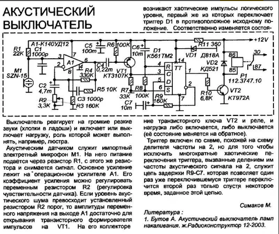 Суть: в реагировании системы на громкие звуки, скажем, на хлопок. Это устройство собирают даже без микроконтроллера.