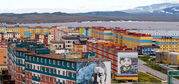 2. Вместе с ними в новогоднюю ночь входит Анадырь. Он возведен на вечной мерзлоте. Город выглядит красиво и эффектно, из серости его выделяют ярко выкрашенные многоэтажные дома. От города до столицы больше 6000 км.