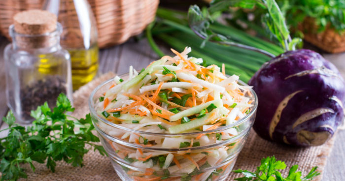 Корейские закуски привлекают острым и приятным вкусом, красивой нарезкой компонентов и использованием различных овощей, грибов и даже морепродуктов. Сейчас свободно можно приобрести специальные терки для закусок по-корейски и самостоятельно приготовить вкусные блюда. Предлагаем рецепт кольраби (капусты-репы) в корейском стиле. Такой салатик можно заготовить заранее и хранить в холодильнике, а при надобности — вкусная закуска всегда под рукой.