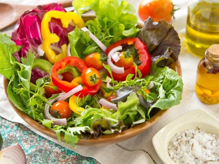 8. Салат солят, перчат и посыпают любимой зеленью: кинзой, базиликом, петрушкой и т.д