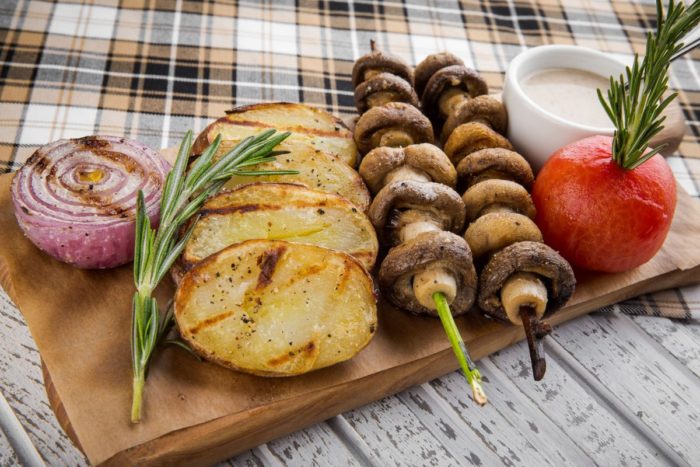 • Для жарки применяются разнообразные овощи: кабачки, перец, баклажаны, зеленая стручковая фасоль, молодые кукурузные кочаны, зеленый горох, лук, томаты, брокколи, морковь и др.