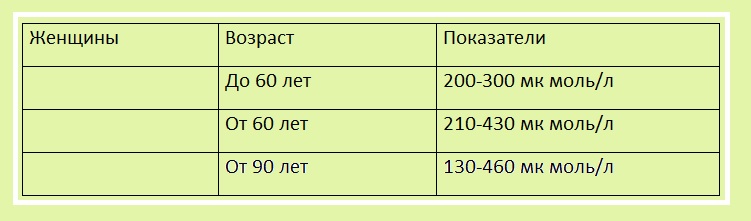 • Новорожденные детки с первого месяца жизни и до года норма 100-372 мк моль/л.
