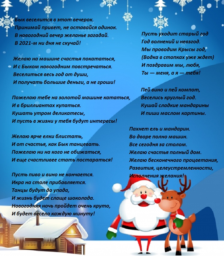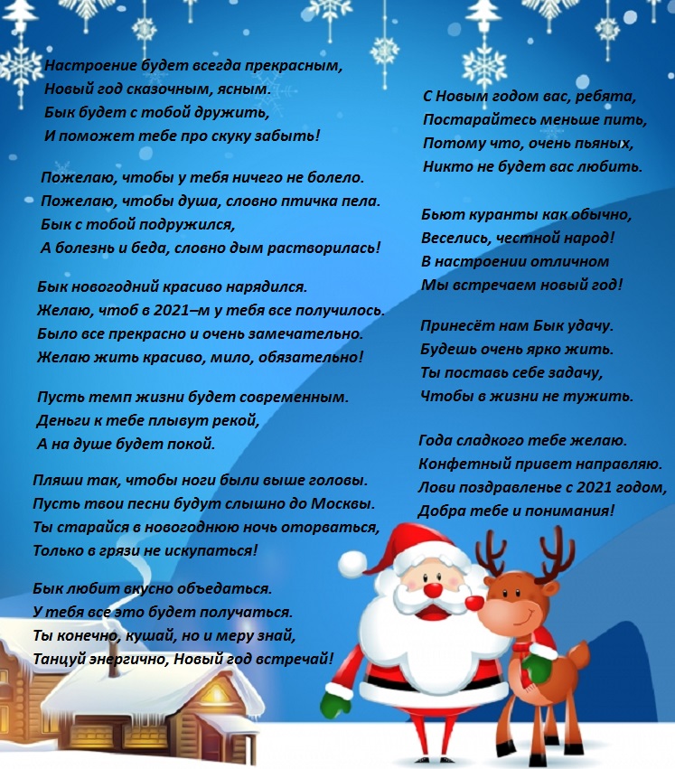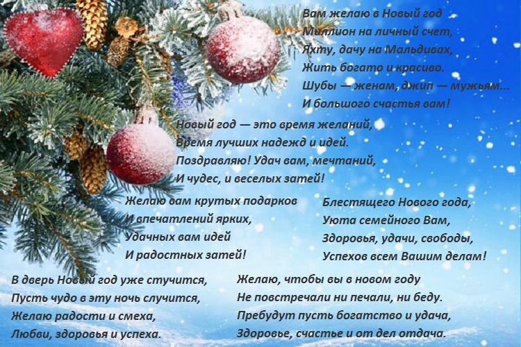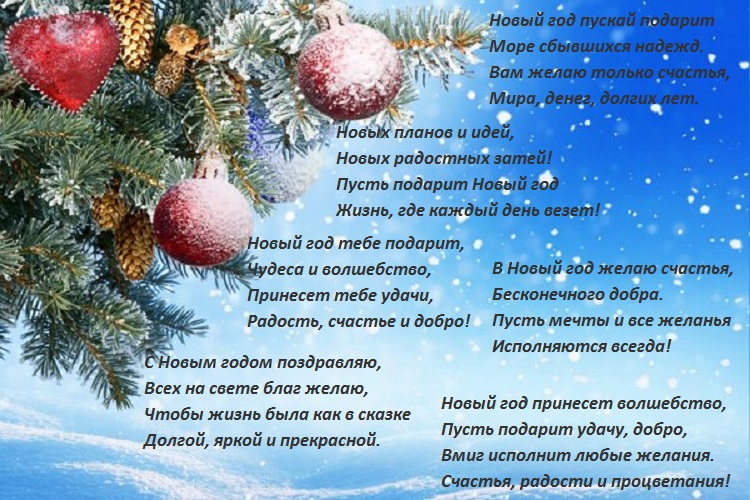 Новогодний чудо праздник! Смех, веселье, волшебство. Уж давно повелось в нашей стране слать поздравление. Когда-то это были красивые открытки. Сегодня же все гораздо проще-смс. Новогодние сообщения быстро летят по невидимым каналам сотовых операторов. Они в считанные секунды могут подарить близким людям радость, вашу любовь, теплоту души. Сообщением можно даже разыграть, отправив смешной прикол.