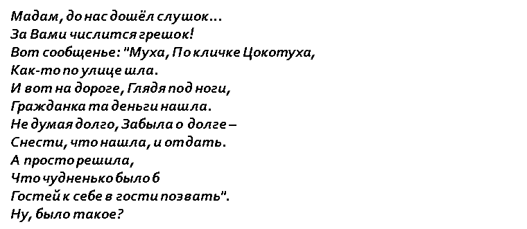 Сценка муха Цокотуха: сказка переделка по ролям для взрослых, юбилей женщины