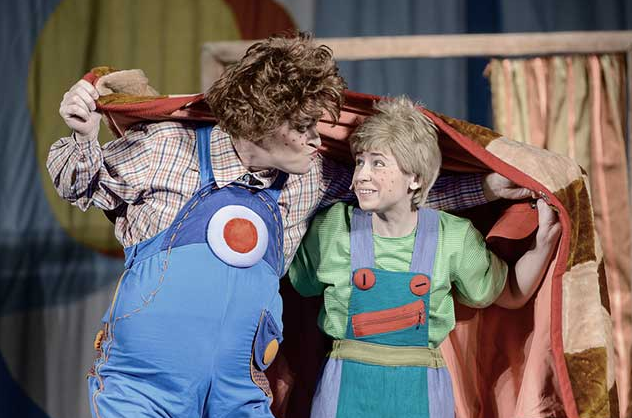Два человека переодеваются в костюмы Малыша и Карлсона.