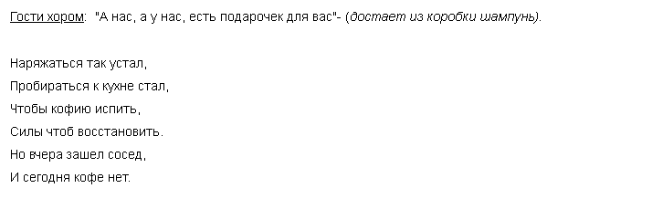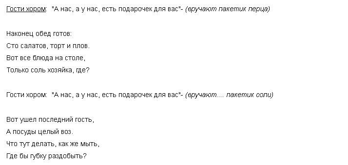 Ведущий продолжает читать текст, а сценку разыгрывают гости экспромтом.