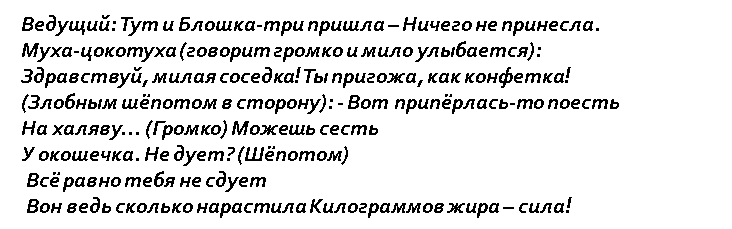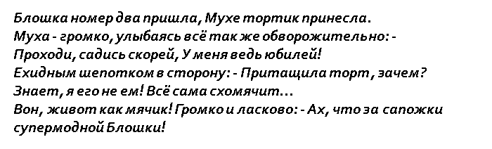 - Сценка муха Цокотуха: сказка переделка по ролям для взрослых, юбилей женщины