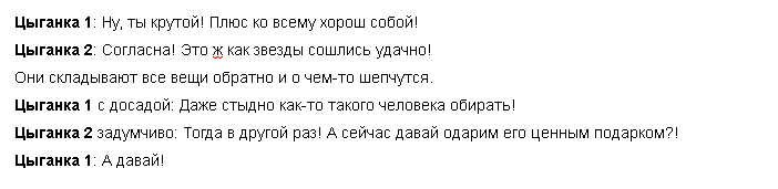 Мешочек опустел и цыганки начинают выражать свое восхищение мужчине.