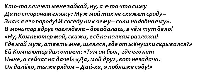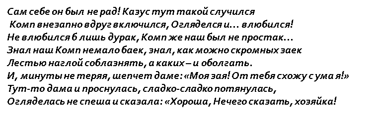 В этом месте хорошо сделать небольшую паузу, чтобы показать флирт Супруги и Компьютера.