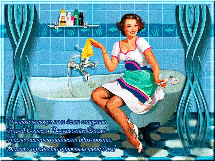 Поздравляю с Чистым Четвергом! Желаю идеальной чистоты везде. Пусть будут выметены все уголки в доме, вымыты все труднодоступные места на теле и очищены все, даже самые дальние, закоулки в душе!
