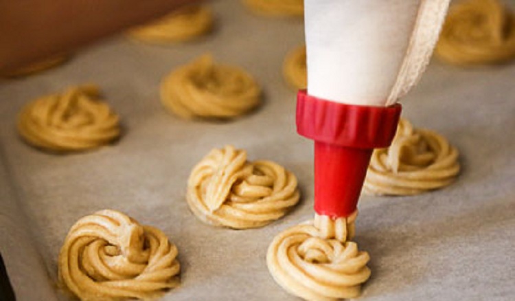 С помощью кондитерского мешка отсаживаем их на противень, застеленные пергаментной бумагой. Выпекать при 190 около 20 мин, снижаем темп. до 170 выдерживаем еще 5-7 минут.