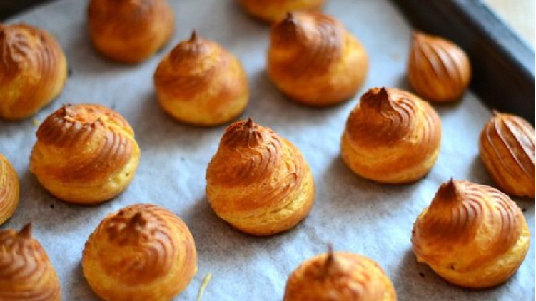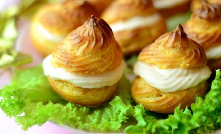 Небольшие сдобные шарики, обязательно из заварной массы. Во время выпекания внутренность становится пустотелой. Ее наполняют разными наполнителями, сладкими кремами, соусами, салатами.