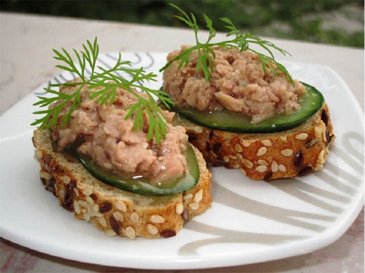 Маленькие кусочки хлебушка  с , рыбкой, икоркой, мягкими сырами, творожными наполнителями, прекрасно дополняют меню, украшают стол яркими красками. Такое лакомство может разнообразить не только будние дни. Этот кулинарный шедевр придется по вкусу и взрослым, и детворе. Начинка поверх хлебушка может быть даже сладкая, фрукты в карамели, сливочные крема.