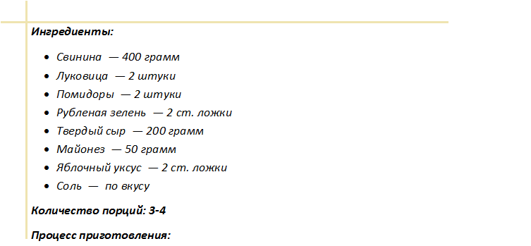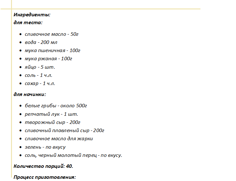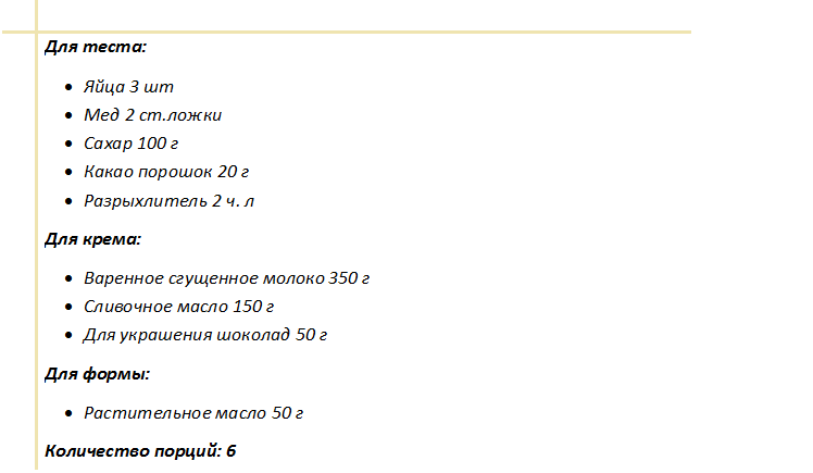 Рецептура рассчитана на 6 порционных кусочков: