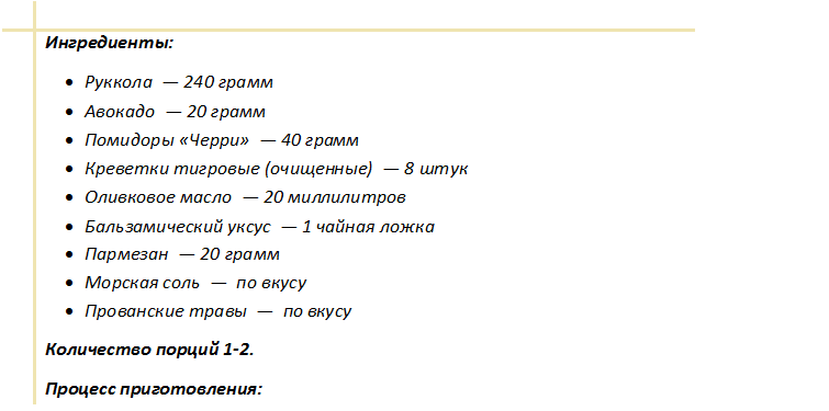 Завершающий этап подрумяненные креветки, соус на основе бальзамического уксуса с добавлением масла.