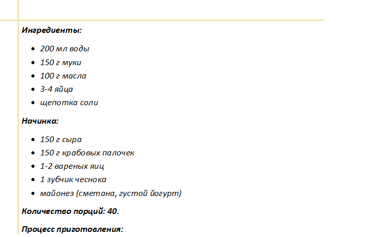 Для этой закуски готовится заварное тесто, в конце приготовления добавляется творожок.