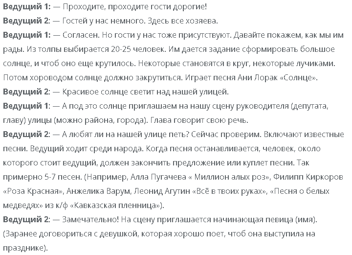 Сценарий подходит для любого праздника Дня улицы, не зависимо от расположения и названия.