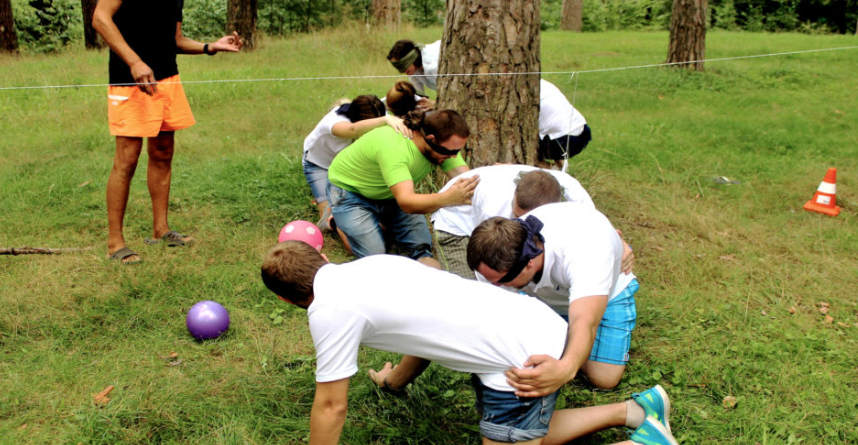 1. Нужно выбрать четыре дерева и натянуть между ними веревку, как бы по кругу. Расстояние до земли должно быть 1 метр. В центр встают участники и по очереди стараются перелезть через веревку, стараясь ее не задеть. Под веревкой пролезать нельзя, можно залезть на дерево и таким образом перебраться. Участников можно поделить на две команды, выигрывает та, которая выполнит условие и окажется по другую сторону веревки.