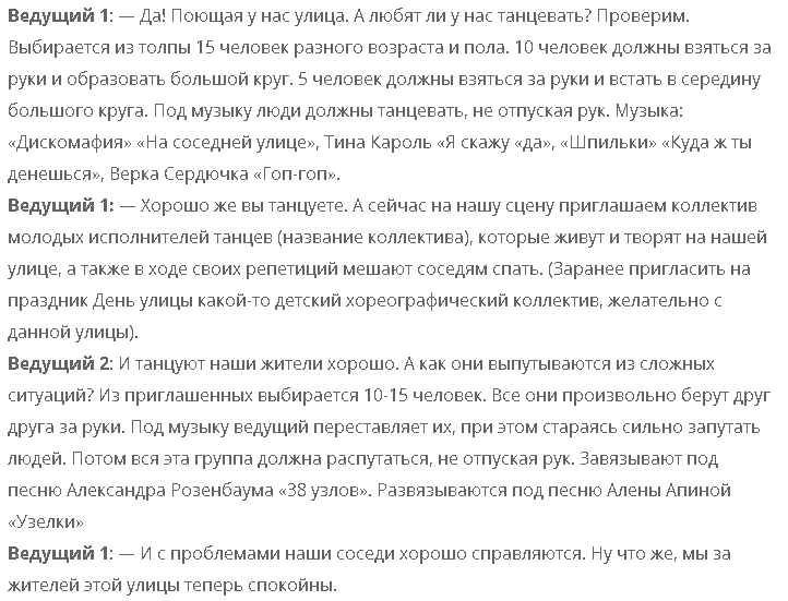 Праздник День улицы, праздник радости и веселья: сценарий праздника, песни День улицы, скороговорки. Конкурсы игры улица: для семейных пар, для молодёжи, для детей. Весёлый сценарий конкурс улиц