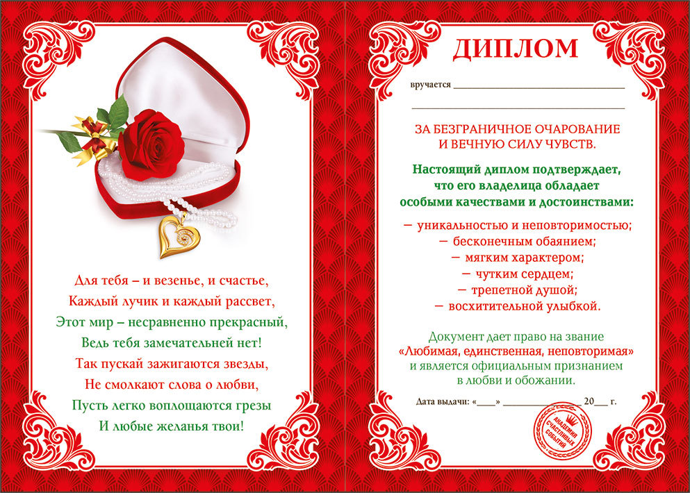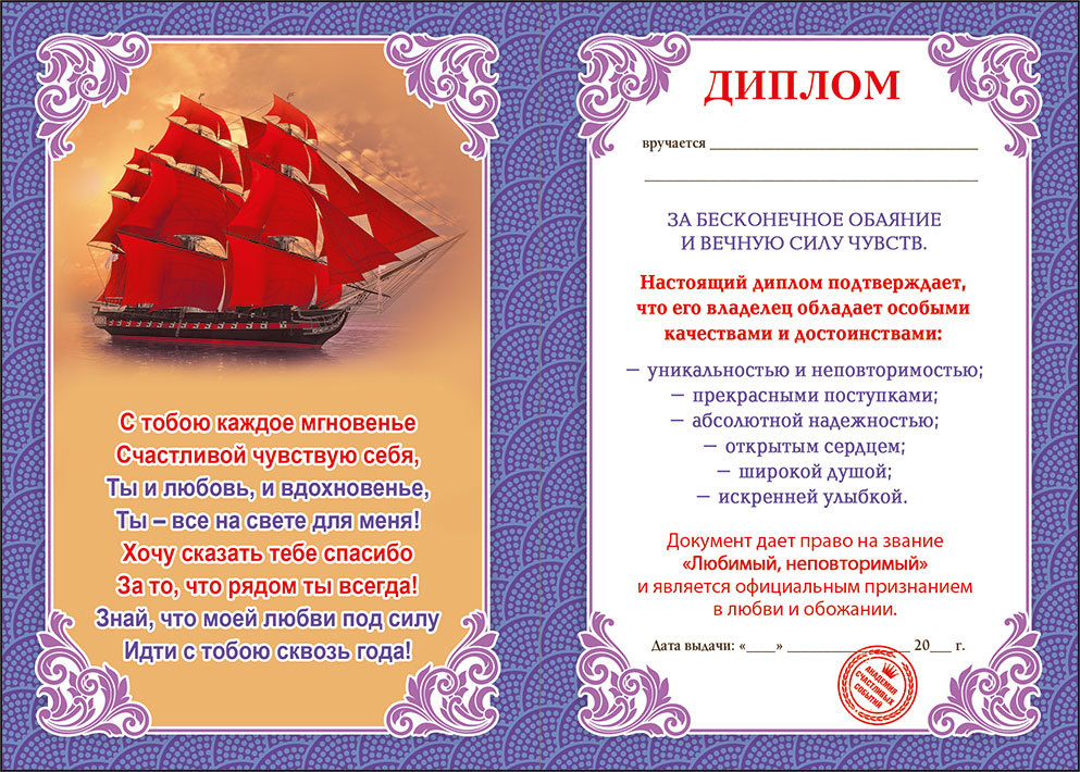 • Диплом для любимого и неповторимого;