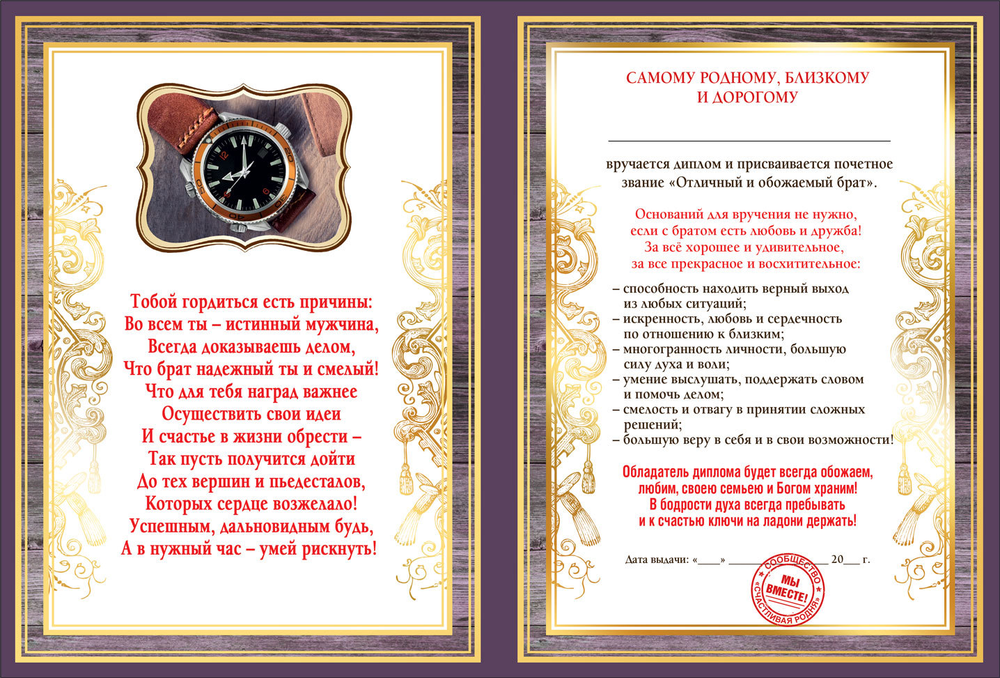 • Диплом отличного брата;