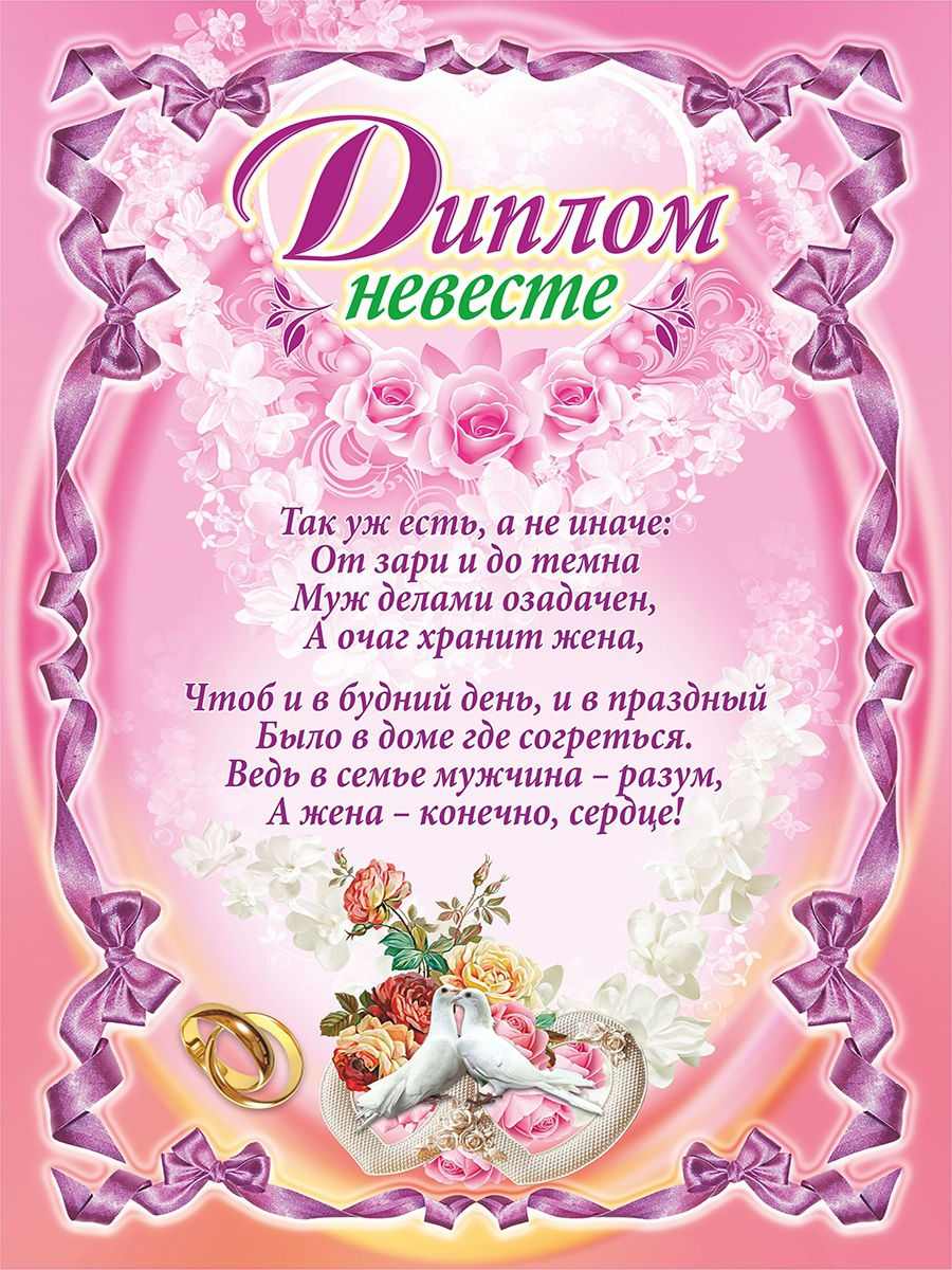 • Диплом невесты;