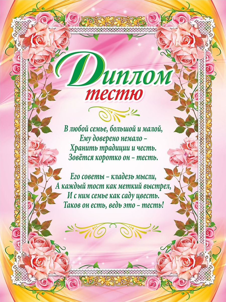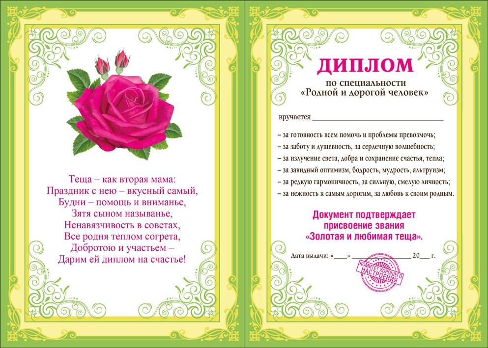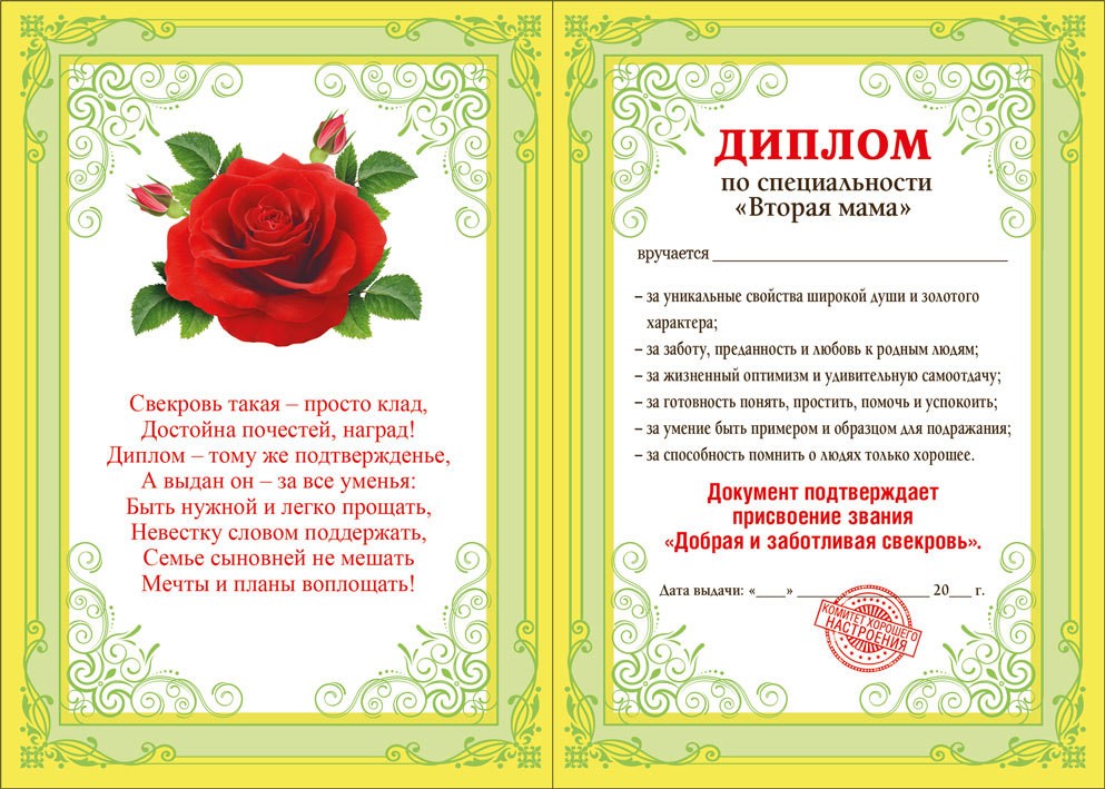 • Диплом золотой свекрови.