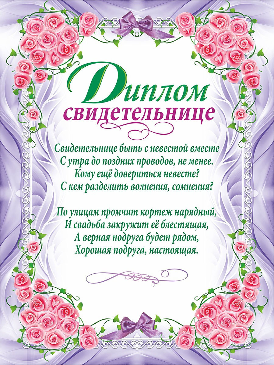 • Диплом свидетельнице;