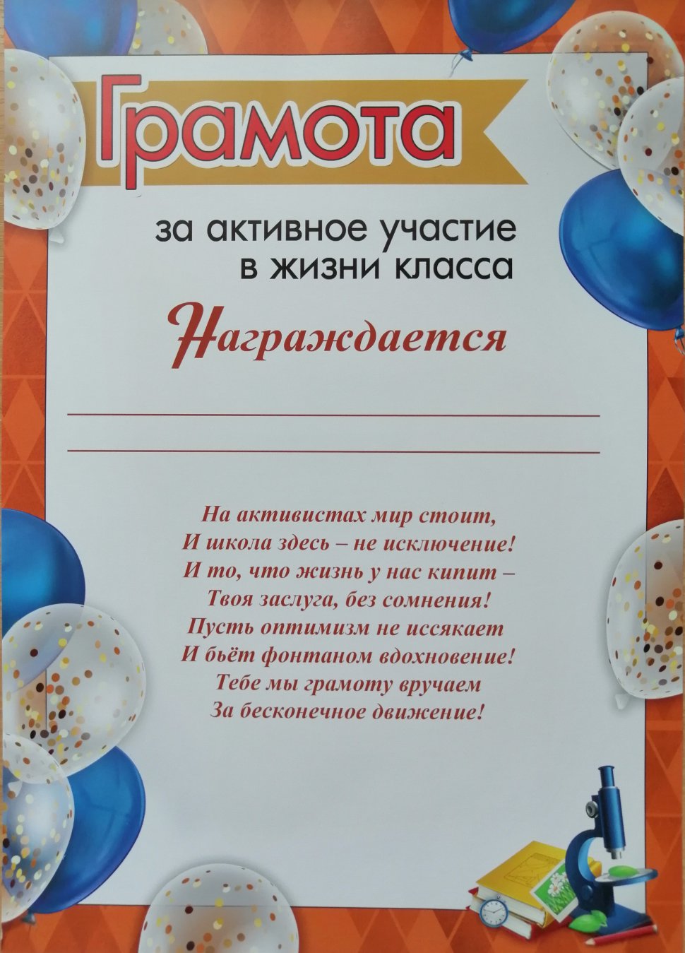 • Диплом пожизненного оптимиста;