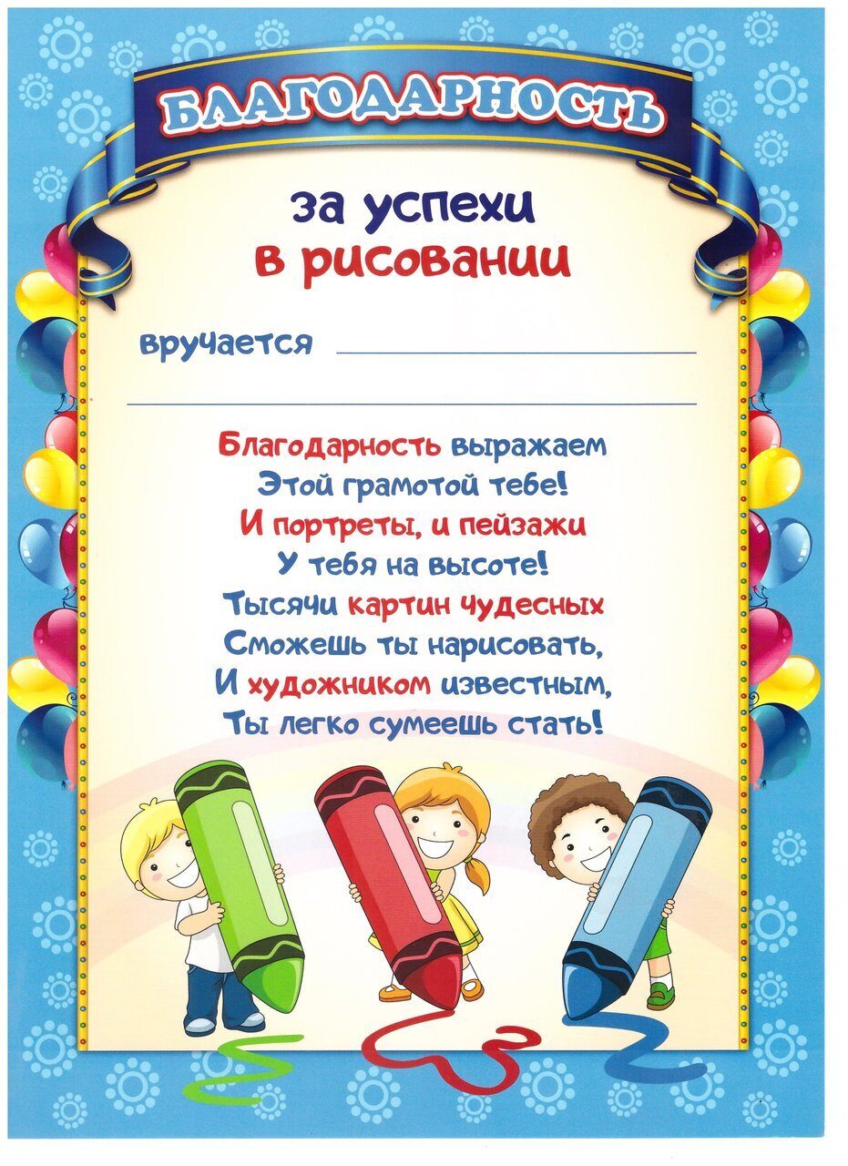 • «За успехи в рисовании»;