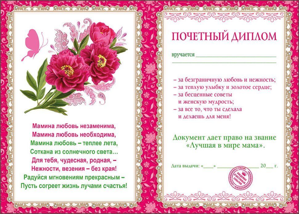 • Диплом для второй мамы;