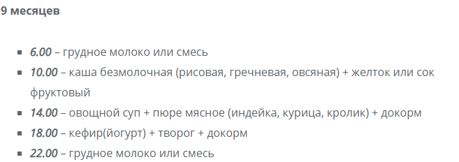 Меню прикорма малыша