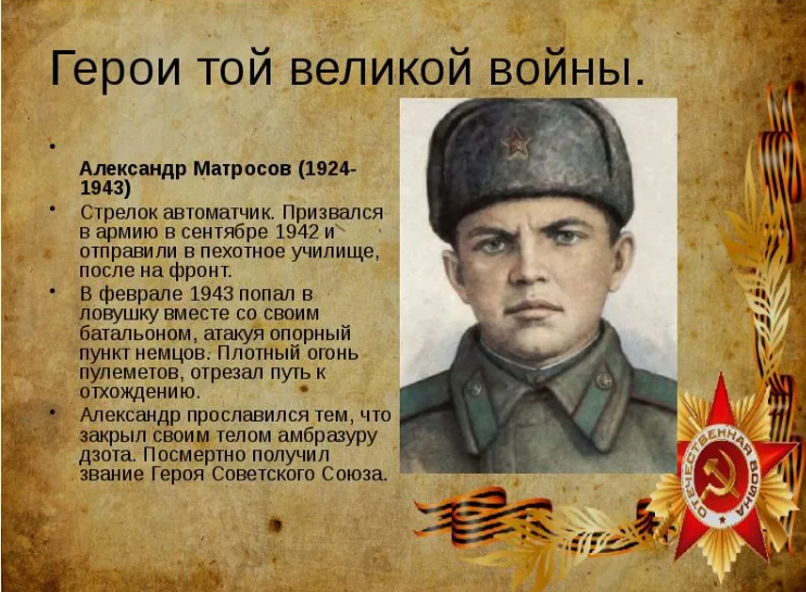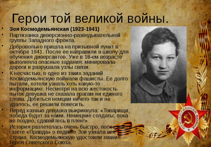 Но самый большой подвиг был совершен в сороковые годы 20 века, когда гитлеровцы коварно напали на СССР. Это была тяжелая и кровопролитная война, которая длилась четыре года.