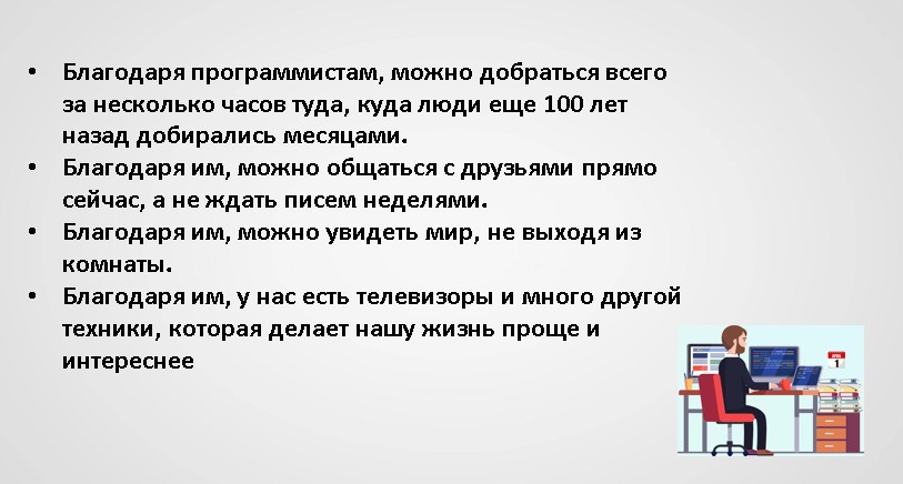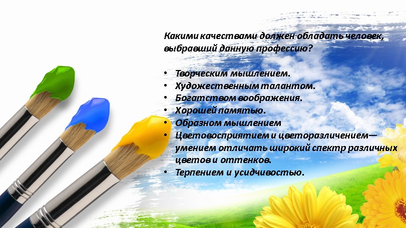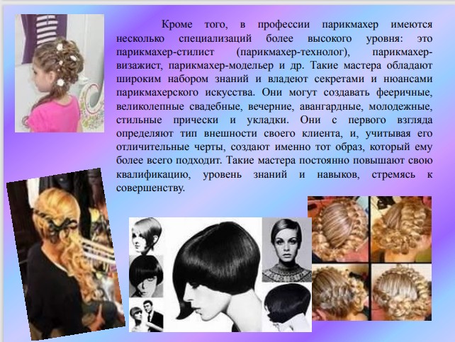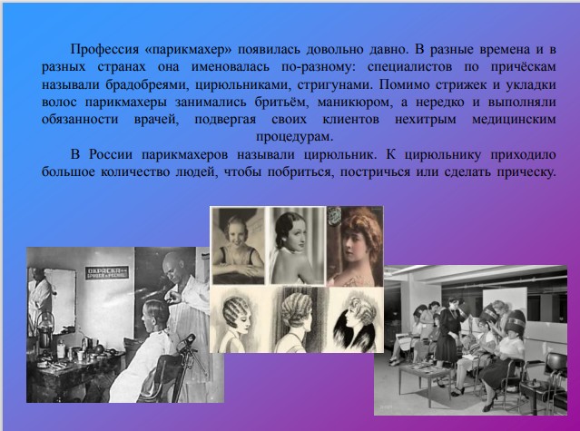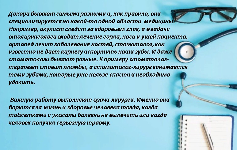 Работа над проектом, это творческий процесс, который дает возможность проявить фантазию и узнать много нового. По желанию в него включают и другие пункты, например, когда появились первые художники, врачи и т.д. ; исторические факты; известные личности в профессии.