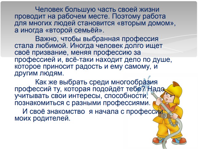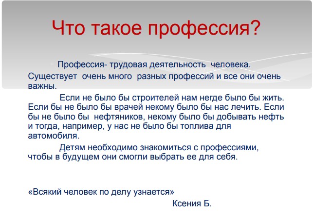 - Произвольная часть — ребенок рассуждает о том, как важно правильно выбрать профессию.