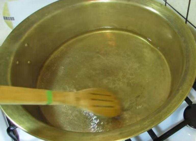 Вливаем воду в кастрюлю или в таз (использовать желательно эмалированные), сахар добавляем туда же. Затем ставим на плиту и ждем закипания.