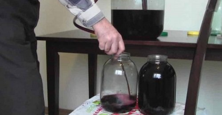 Чтобы получилось вино, жидкость должна забродить, держим бутыли в прохладном месте. Перемешивать необходимо один раз в два дня. Если образовывается шапка, перемешивайте каждый день, иначе напиток может испортиться. Через семь дней появляется кислый запах, из гидрозатвора выходят пузыри. После того, как вы заметили этот процесс, удалите жмых, используя резиновую трубку или марлю.