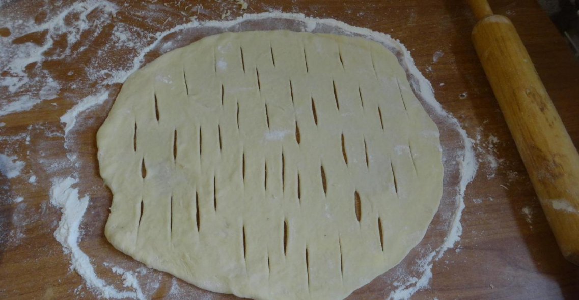 На лепешке делаются надрезы.