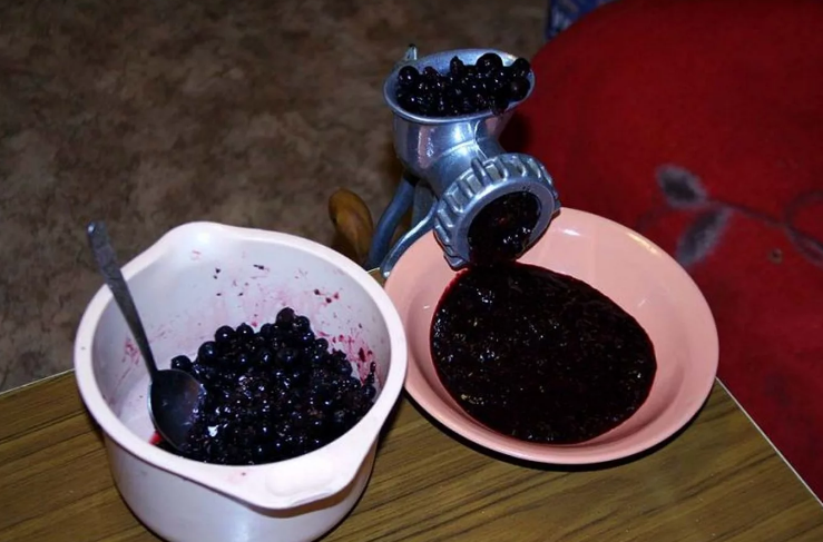 Перекручиваем ягоды в мясорубке. Если у вас есть блендер, вы можете его так же использовать. Но, если у вас не оказалось этих инструментов, воспользуйтесь толкушкой.