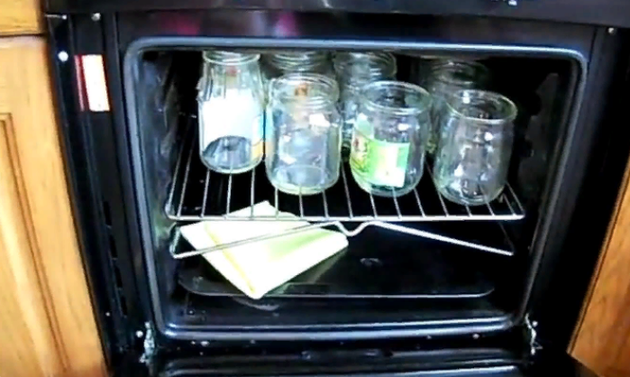 Банки стерилизуем в духовом шкафу при температуре двести пятьдесят градусов, пятнадцать минут. Крышки стерилизуем в кипятке 10 минут.
