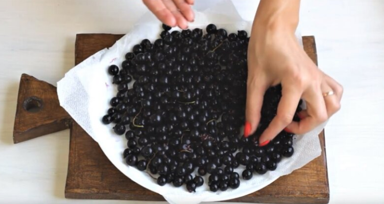 На бумажной салфетке хорошо просушить. Все ягоды перебрать, мятые и порченые удалить, не забудьте оторвать плодоножки.