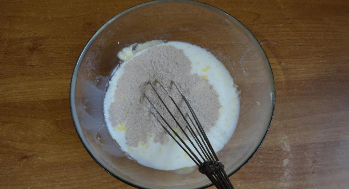 1. В миске смешать муку и разрыхлитель.